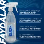 Yağmurlu günlerde düşük hızlarda bile kendisini gösteren su itici etkisi, camlarda su kaydırıcı görevi görür ve camlarınızı inanılmaz şekilde su tutmaz, kaygan hale getirir. Bu da araç sürüş deneyiminizi olabilecek en üst seviyeye çıkartır. Bunun yanında, araç camlarınızın çok daha uzun süre temiz ve parlak görünmesini sağlar. Camlarda su lekesi ve kireç oluşumunu geciktirir.