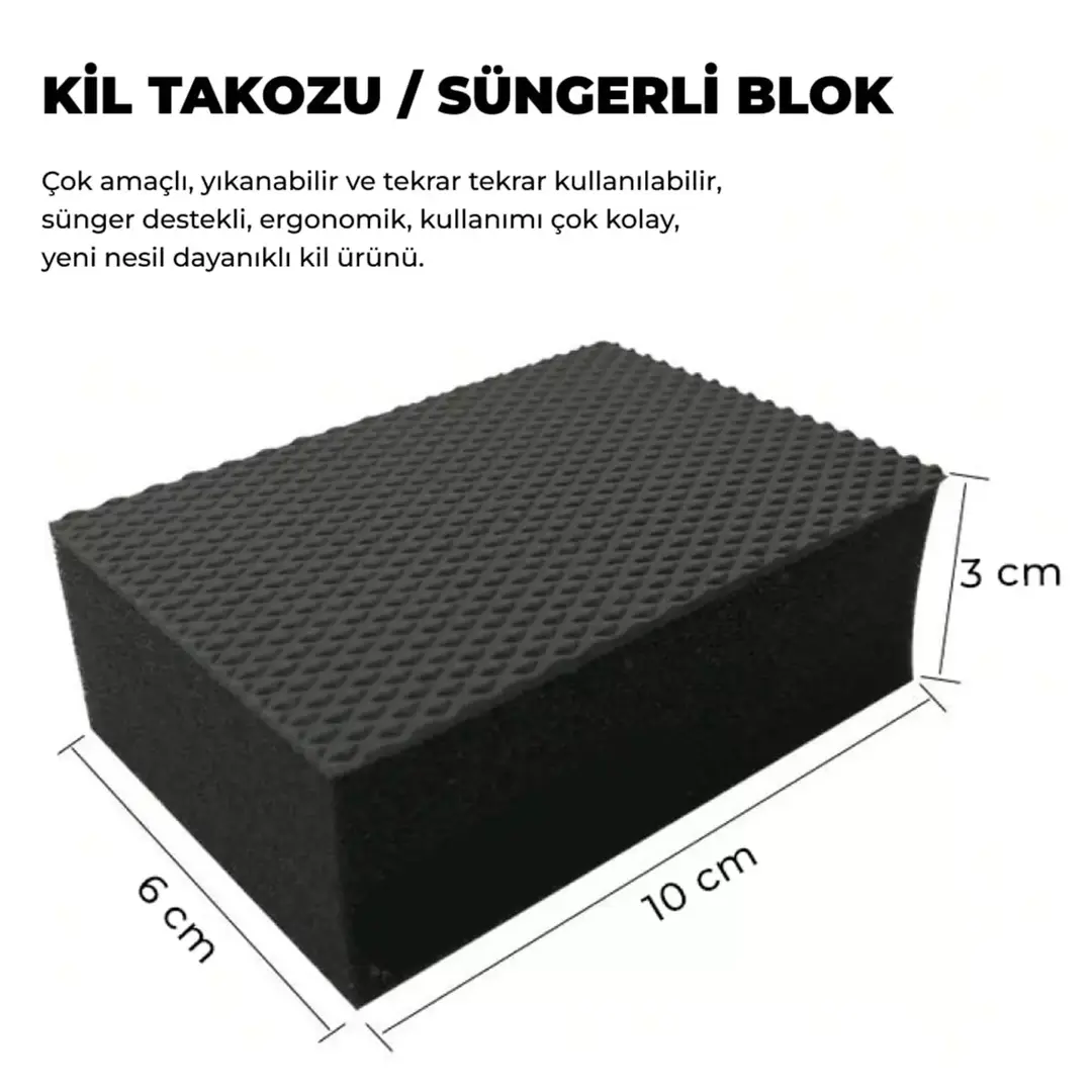 MG-PS ClayPad Pro, araç boyasında zamanla biriken zift, reçine, endüstriyel toz, fren balata kalıntısı ve su lekelerini tek adımda uzaklaştırmak için tasarlanmış ince-grade polimer kaplı sünger bloktur. 10 × 6 × 3 cm kompakt boyutu ve ergonomik sünger yapısı sayesinde avuç içine tam oturur, yüzeye eşit basınç uygular. Böylece wax/sealant uygulamalarının tutunma süresi uzar ve boya ipeksi bir pürüzsüzlüğe kavuşur.