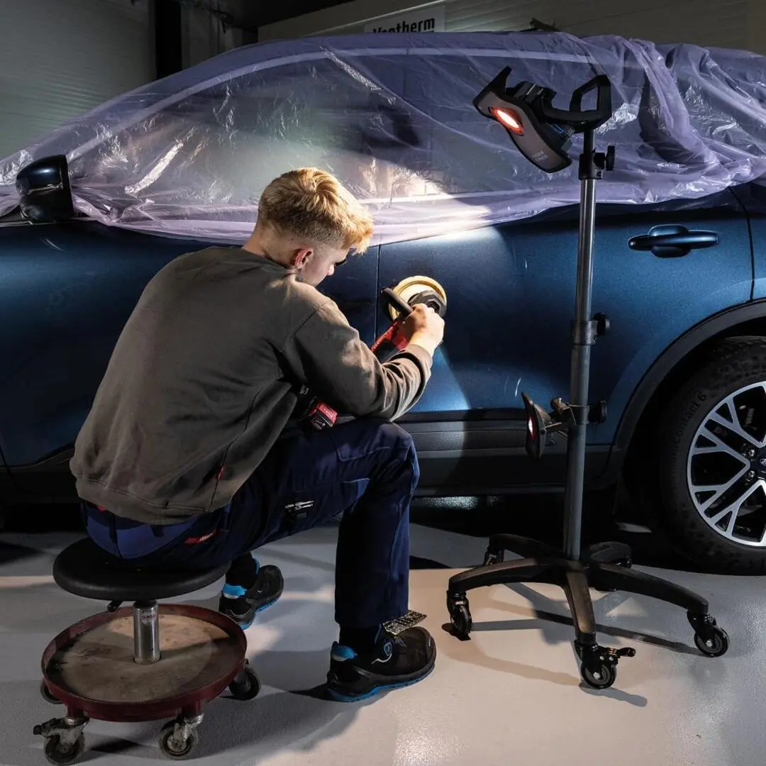 Güçlü MULTIMATCH 3 CONNECT çalışma lambası 3000 lümene kadar ışık sağlar ve parlatma, boyama, temizlik işlemleri ve renk uyumu sırasında geniş yüzeylerin incelenmesi için tasarlanmıştır.